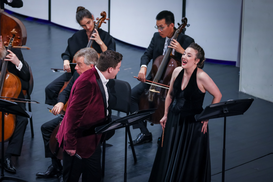 饰演男主角里纳尔多的假声男高音阿列·努斯鲍姆·科恩,则补充了音乐会版的独特互动性。“在歌剧舞台上,灯光让你看不清观众;但音乐会里,你能直接看到他们的眼睛,这种双向的情感交流,让戏剧张力更直接。”而这一切的背后,是毕克特独特的排练方法——“故事时间”。“他会逐段给乐手讲音乐里的情节,比如某个乐句是里纳尔多的挣扎,某个音型是爱情的悸动,让每个乐器都成为‘故事的一部分’。”科恩说,这种细节打磨,让没有布景的演出依然能“让观众身临其境”。