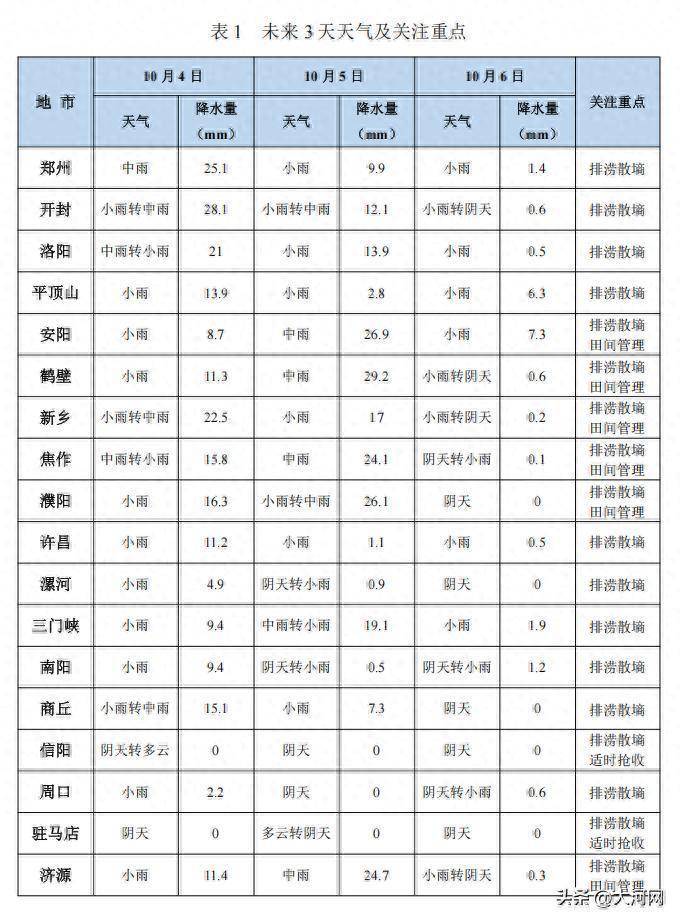今天下午,三门峡南部、洛阳南部、平顶山、许昌、漯河、周口、南阳、驻马店、信阳阴天,有小雨或零星小雨,其中南阳部分县 (市、区)有中雨;其他县(市、区)多云。