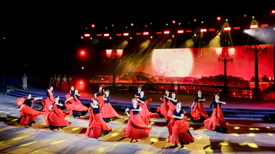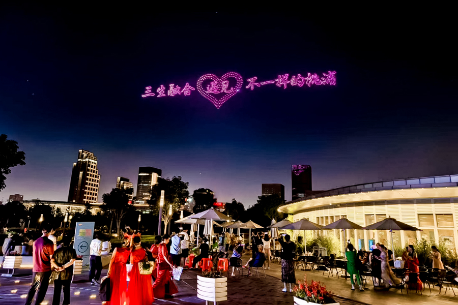 阿卡贝拉的人声交响和《今夜无眠》的华尔兹碰撞出艺术的火花。璀璨夜空中,无人机编队绘制出一幅幅动态画卷,奏响了人文与科技的协奏。