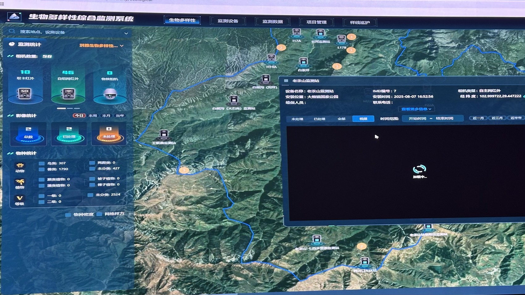 大熊猫国家公园眉山管理分局生物多样性监测系统。