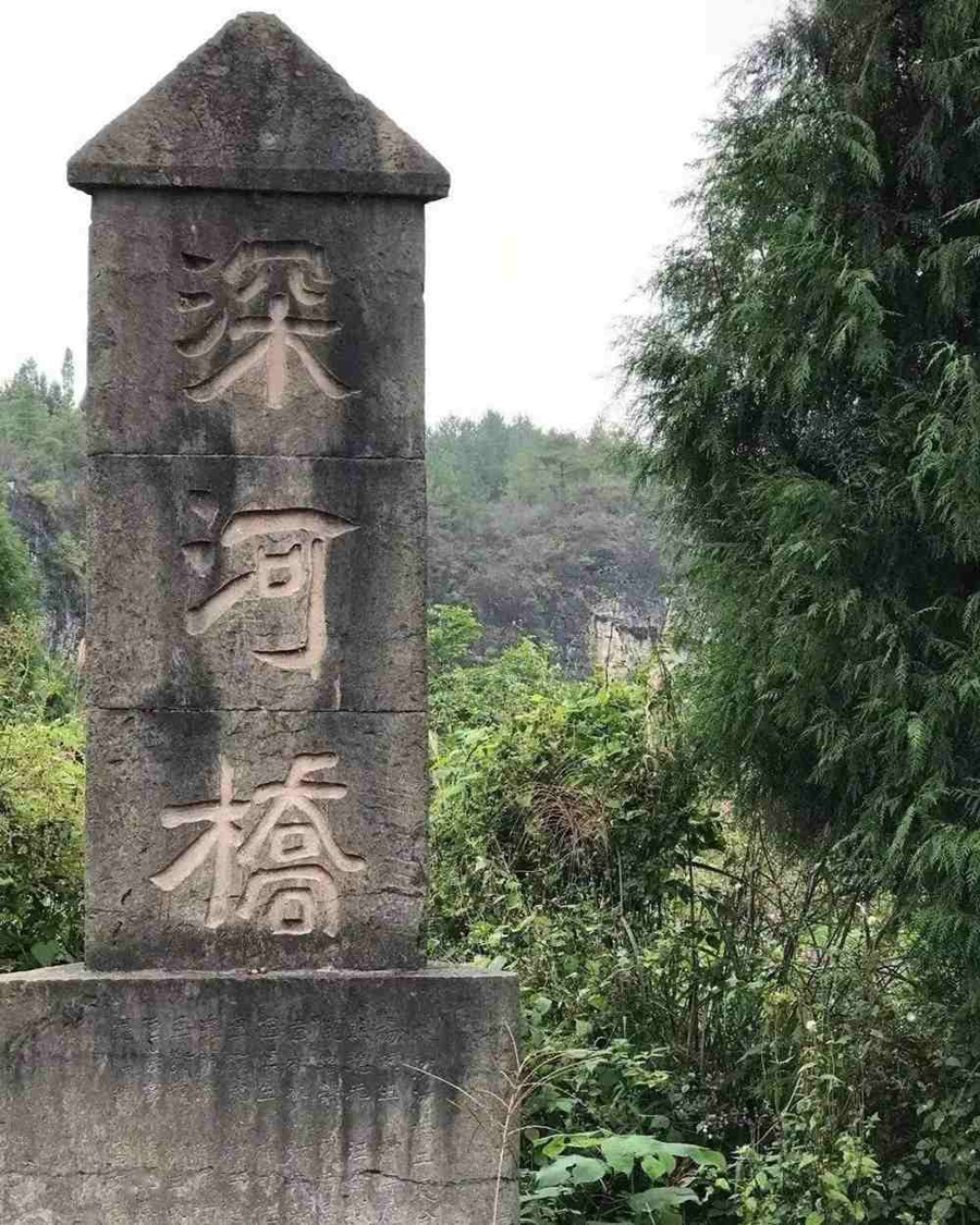 同理,老的也即为阻止日本侵略军而炸毁的深河桥,桥高16.35米,跨度12米,宽5.7米,长有37米,属青石单孔拱桥,横架在深河峡谷之上。这座桥始建于1571年,还是明朝隆庆五年。79年之后的清朝顺治七年即1650年,为阻止孙可望军队占领独山县城,清兵毁桥。将近20年之后的清康熙八年亦即1669年直至道光十年(1830年),独山州人蔡应星家整整五代人,发扬愚公移山精神,先后三次出巨资修葺此桥,保证此要道的畅通。1926年修建直通广西的黔桂公路,更突出了深河桥的重要性,它成了所有车辆行人进入贵州和四川的必经之地。可见其不但横跨山谷,地势险峻难行,还是古往今来兵家必争之地。