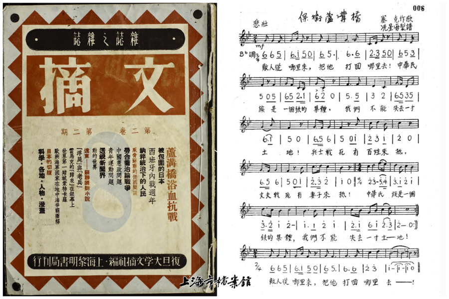 《文摘》月刊《卢沟桥抗战特辑》中刊载的话剧《保卫卢沟桥》同名主题歌。(资料图片)