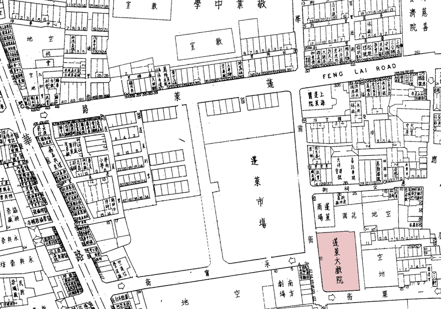 学前街111号地块图(1947),图上右下角标注有“蓬莱大戏院”,这是话剧《保卫卢沟桥》的演出地址。(资料图片)