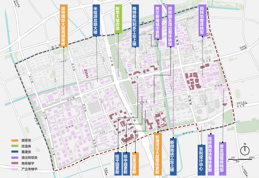 根据方案,大柏树更新范围2.2平方公里,愿景是成为“生命力硅巷,青和力街区”,采用针灸式城市更新策略,打造低成本的高品质“临校空间”,培育创新集群;完善创新及生活配套服务体系,强化功能复合和商务生态营造、片区环境和配套设施升级。提升片区功能混合度与商办楼宇的适应性再利用水平,允许老旧楼宇在一定时期内进行功能业态转换。