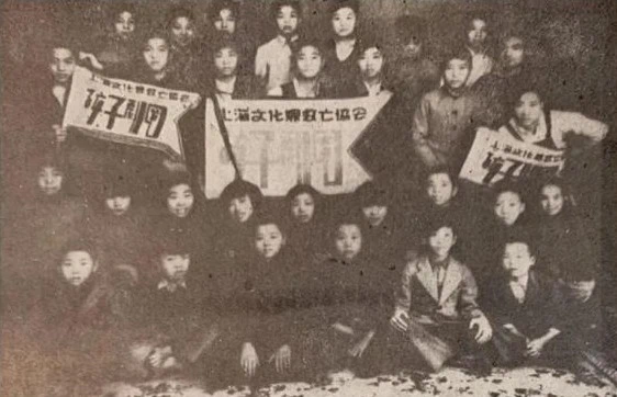 1937年上海,孩子剧团全体团员合影。
