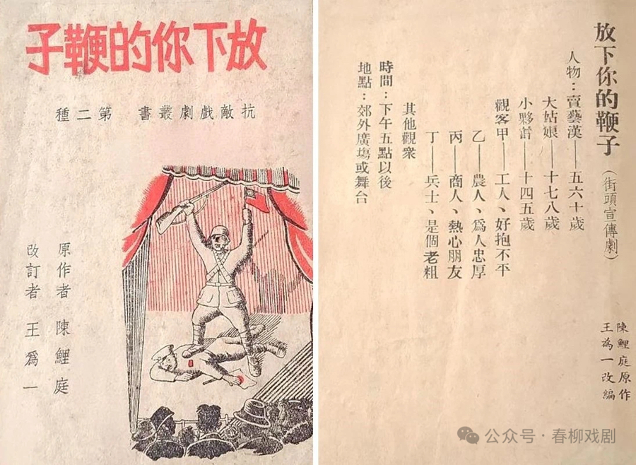 《放下你的鞭子》剧本,1938年1月战争丛刊社编印。