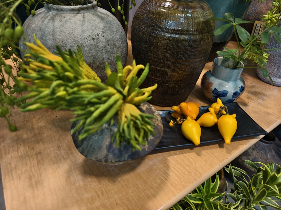 佛手柑与葫芦“合体出道”的原因,来自谐音梗。葫芦谐音“福禄”,代表着长寿与安康,而佛手柑谐音“福寿”,又形似佛手,有多福多寿、招财纳福之意。两者搭配在一起,寓意“福禄双收”,一同摆放在门厅、茶室、书房或工位上,别有一番禅意。